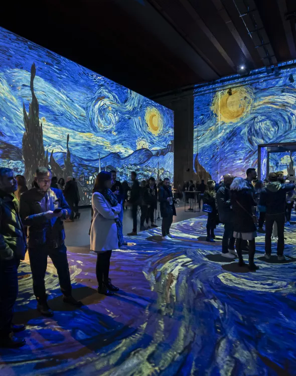 Created in the Bordeaux submarine base, the Bassins des Lumières presents immersive digital exhibitions devoted to the major artists in the history of art and contemporary art. With 12,450 sqm of projection surface, the Bassins des Lumières is the largest fixed multimedia installation in the world. Thanks to its exceptional technical equipment, the Bassins des Lumières provides you with the possibility of transforming and modernising your presentations by creating an environment that is perfectly adapted to your event.